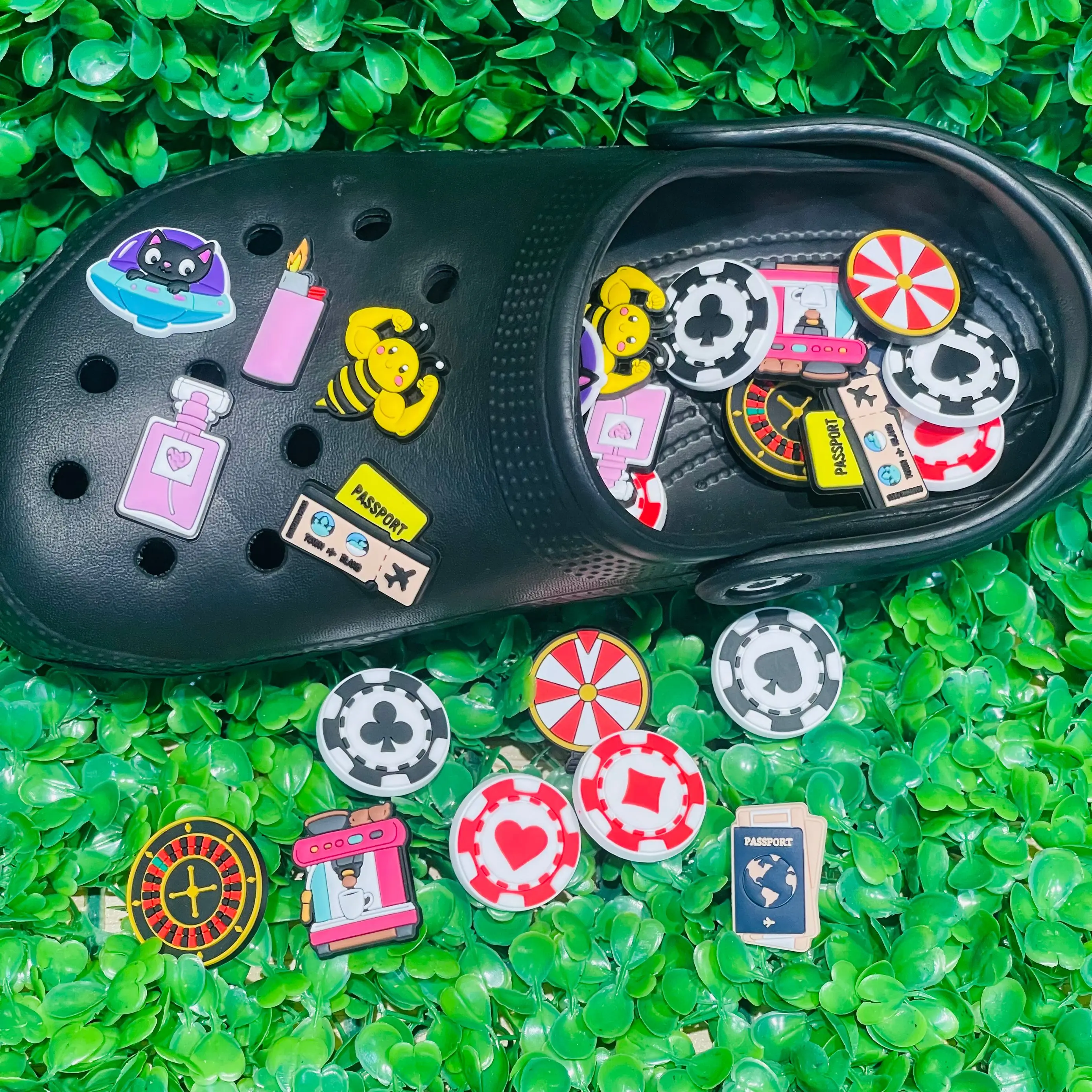 13-100 Stück Design-Stil Poker Dartscheibe Schuh Charms PVC Zubehör DIY Schuhe Schnalle De...
