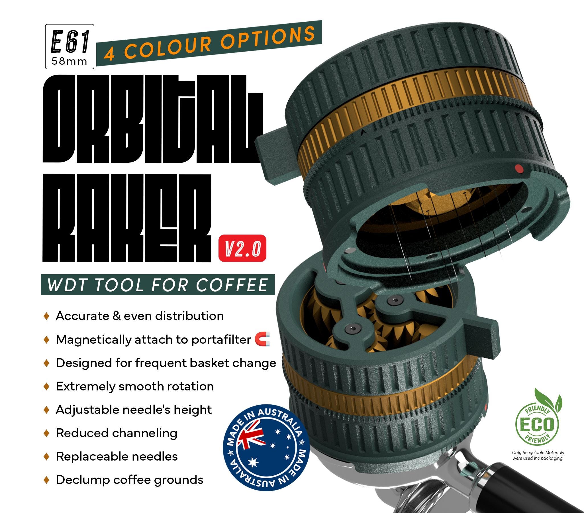 58 mm Magnetisches Kaffee WDT-Werkzeug: Orbital Raker v2.0, E61 Esp...
