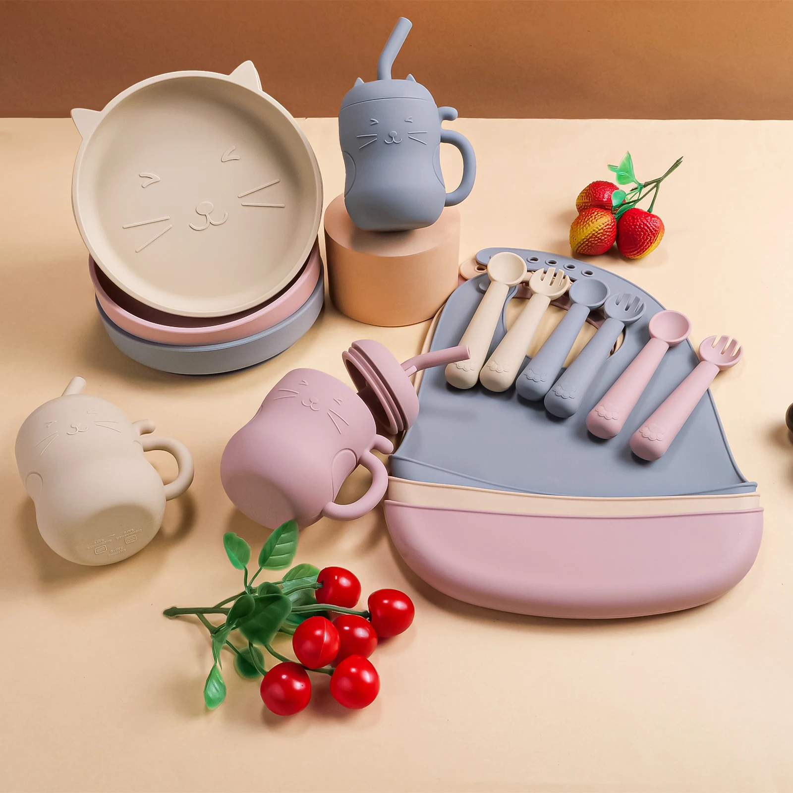 Farbe Kinder 9PCS Baby Fütterung Set Silikon Schüssel Gerichte Platte Wasserdichte Lä...