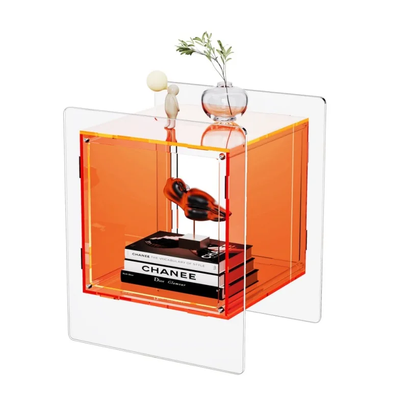 Nachttisch aus Acryl, Farbe mit offenem Lagerregal, transparenter Beistelltisch für das Wohnzim...