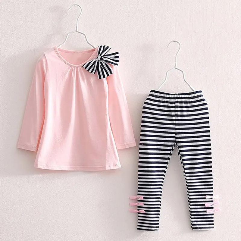 2023 neue Kinder Sportswear Mädchen Herbst/Winter Set Fliege Aufkleber Top gestreifte Hosen Set...