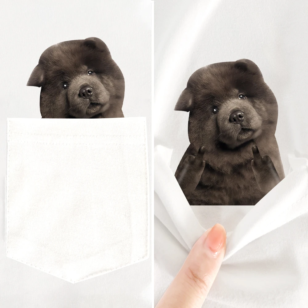 Cloocl schwarz Chow Chow Mittelfinger Tasche T-Shirts Tiere Aufkleber gedruckt Baumwolle T-Shirts M&...