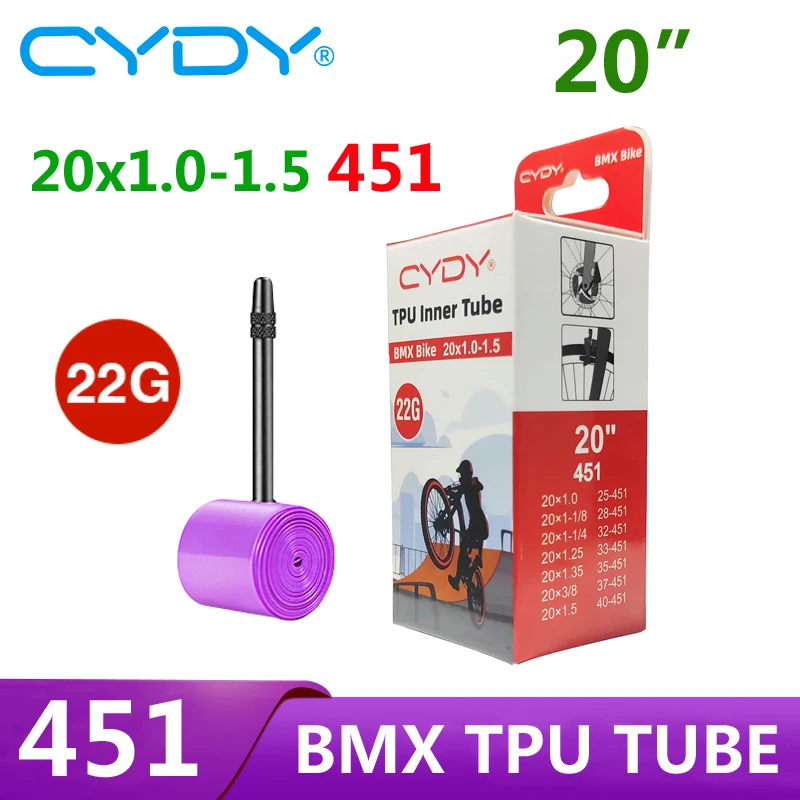 CYDY Fahrrad TPU Innenrohr 20" 451 20x1,0 1-1/8 1-1/4 1,25 1,35 3/8 1,5 Reifen Kamera FV 45/65m...