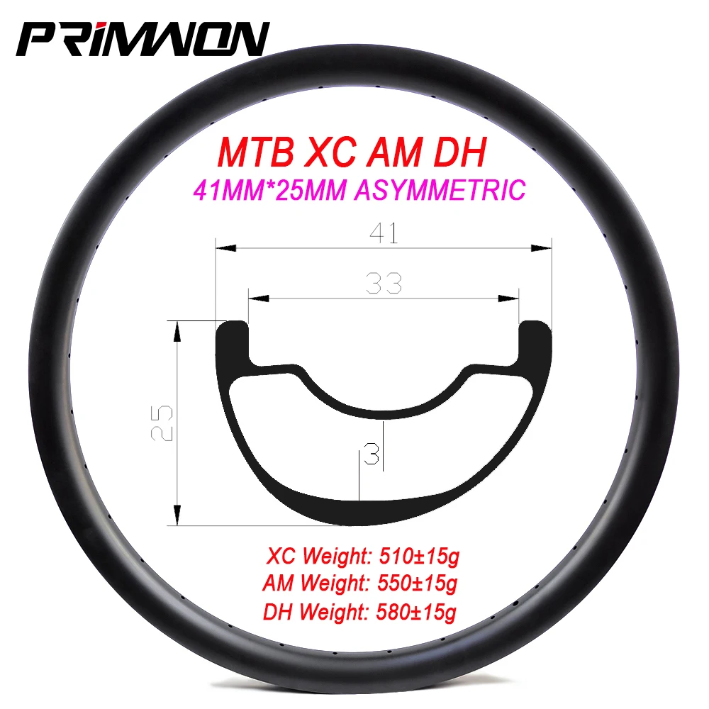 29ER MTB XC BIN DH Bike Carbon Felge 41mm Breite 25mm Tiefe Klammer Tubess Asymmetrische Fahrrad Rad...