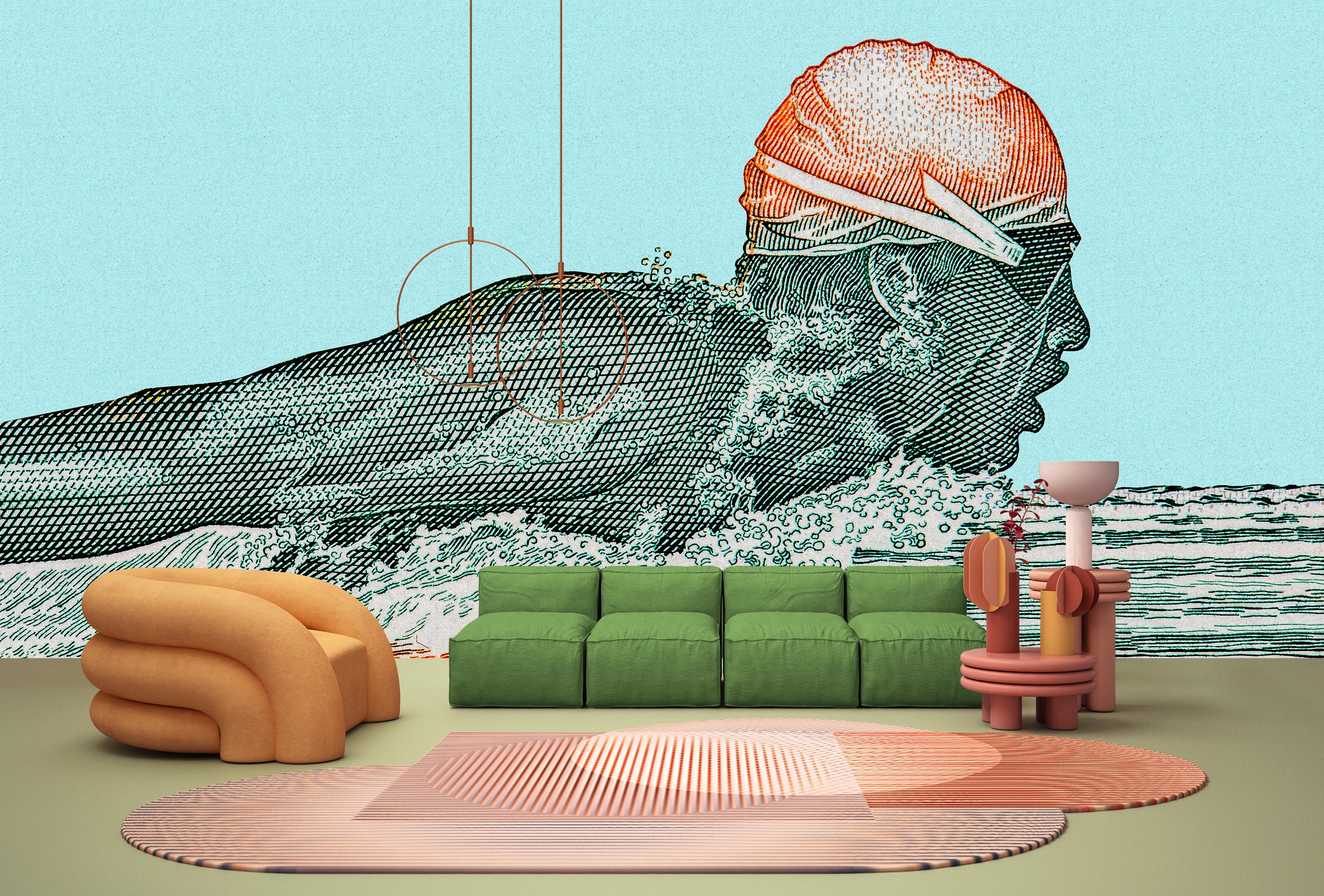 Vliestapete LIVING WALLS "Fototapete Schwimmer Illustration T&...