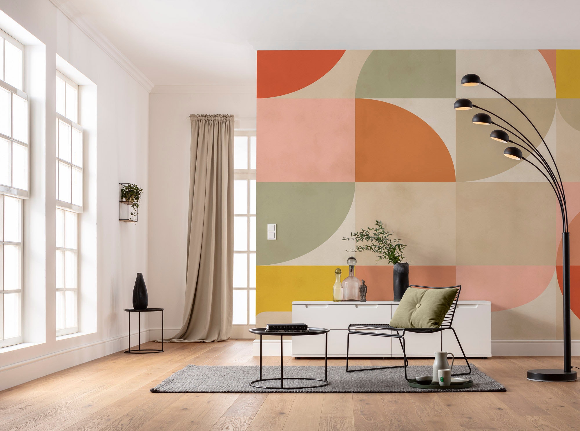 Die bunte Farbkombination und das aufregende Design fügen sich zu einem einzigartigen Wandbild ...