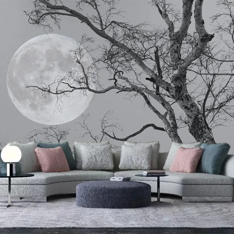 Nach Wandbild Tapete Personalisierte Moderne 3D Zweig Mond Baum Hintergrund Wand Malerei Wohnzimmer ...