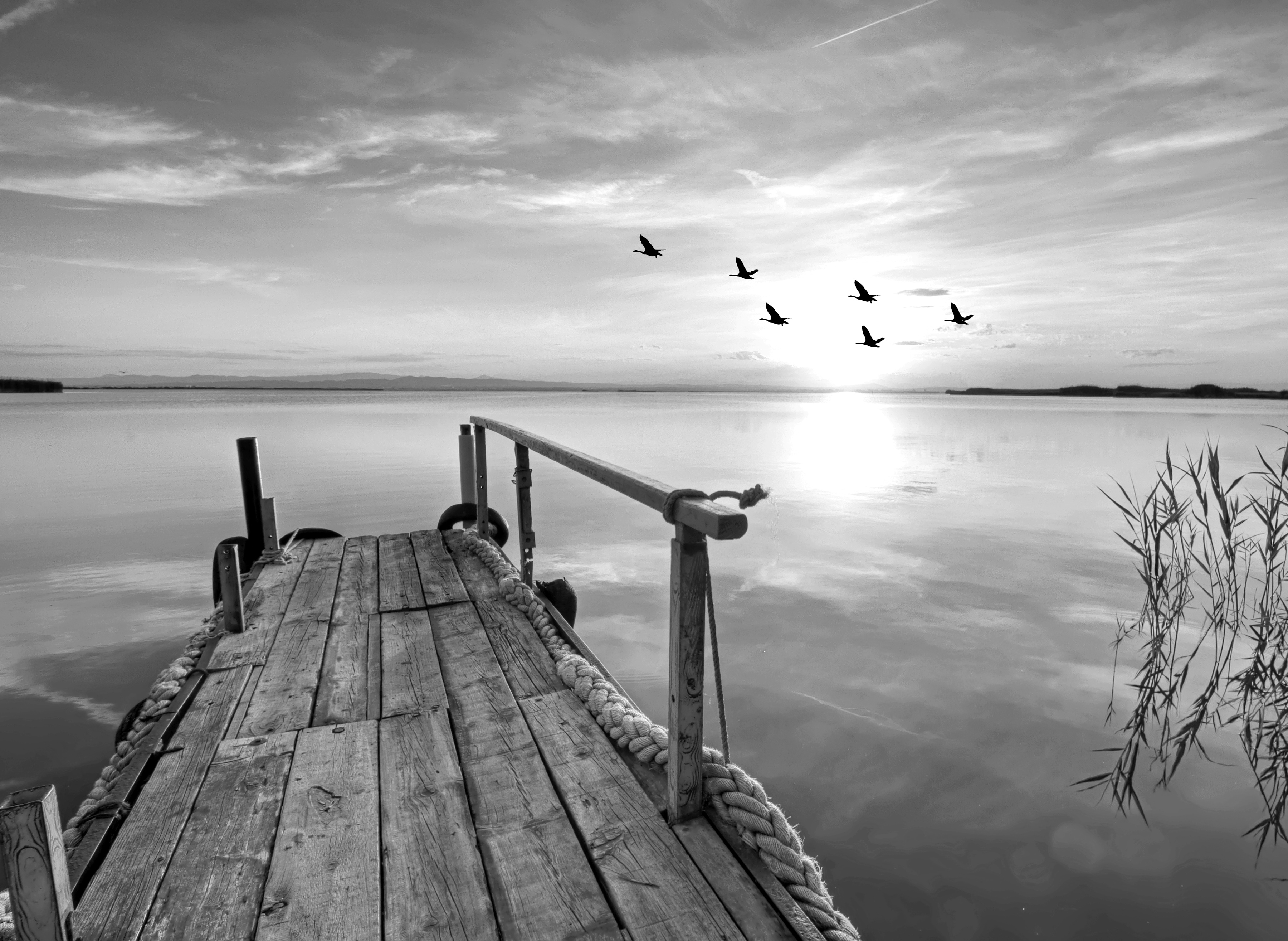 Vliestapete, Steg am Wasser Schwarz & Weiß, Poster, Dekoration, Landschaft, Stadt, Stilleb...