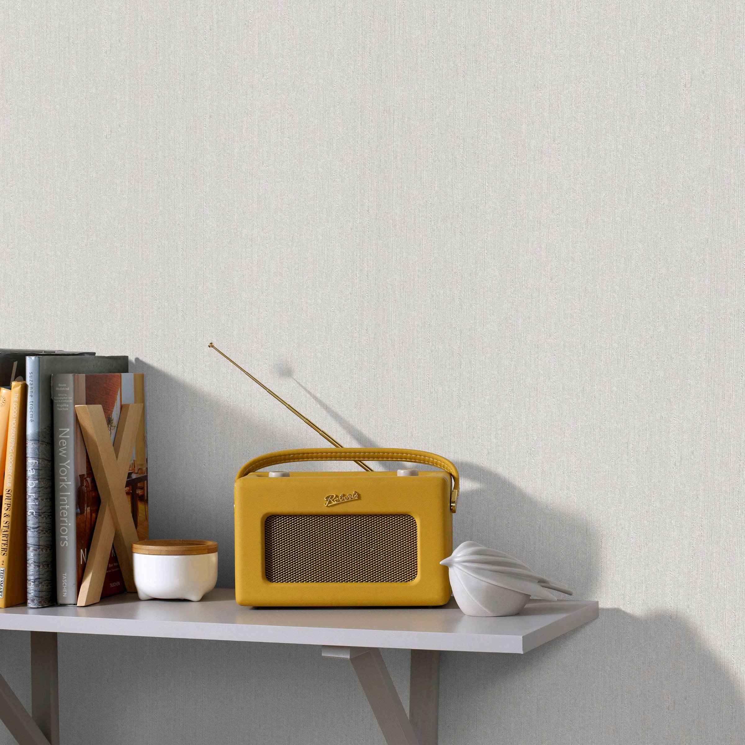 Tapezieren kann jeder mit der extra breiten Vliestapete - Leinen uni mit Glanz off white von Superfr...