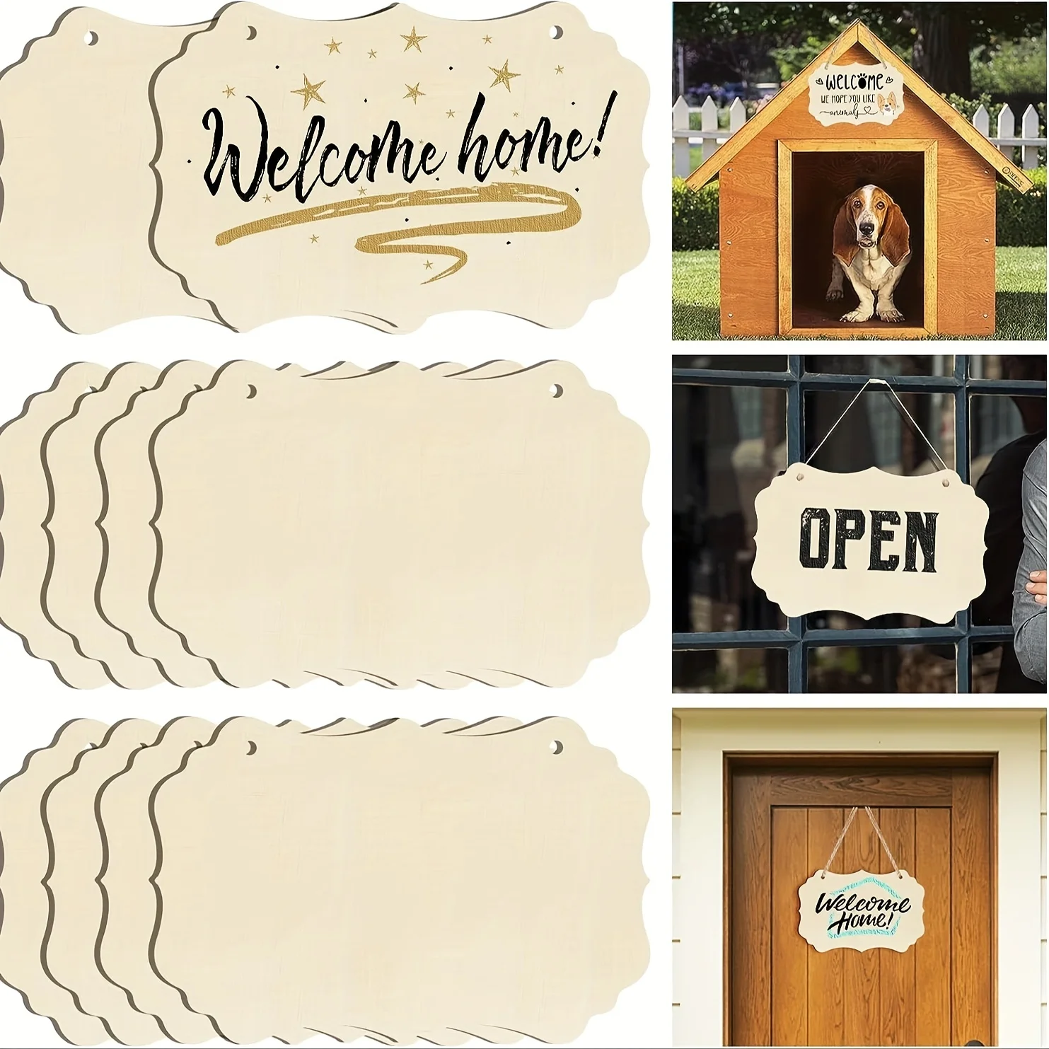 10 Stück großes rechteckiges hölzernes Willkommen stür schild zum Malen, diy le...