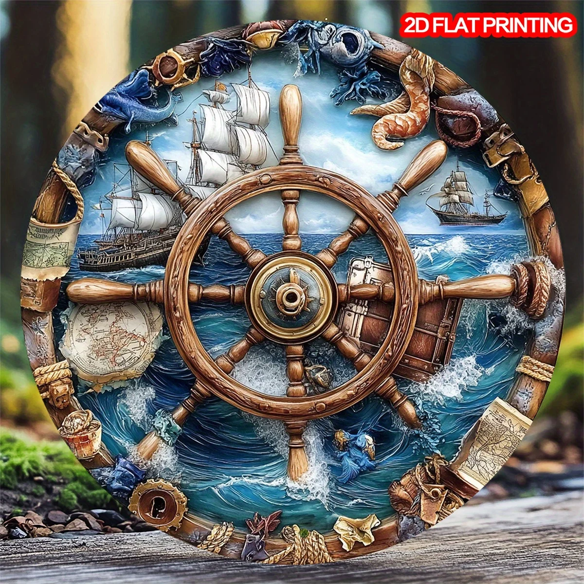 Rundes Wandschild aus Metall | Rustikales Maritim – ideal für Halloween- und Weihnachtsge...
