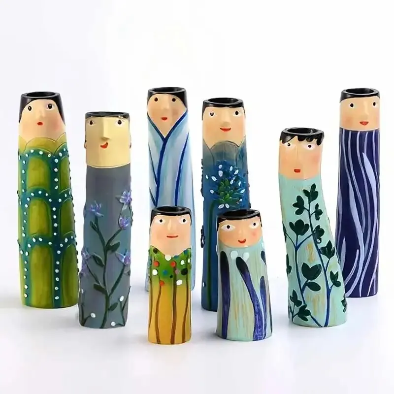Böhmische familien gesichts vase handgemachte harz trocken blumen dekor vase bad bücherreg...