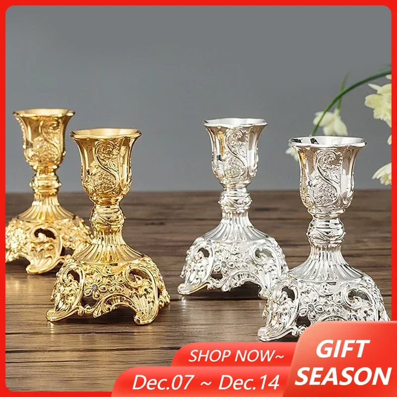 2 Stück Retro Kerzenständer Gold Silber Kerzenhalter Hochzeit Mittelstücke Kerzenhalt...