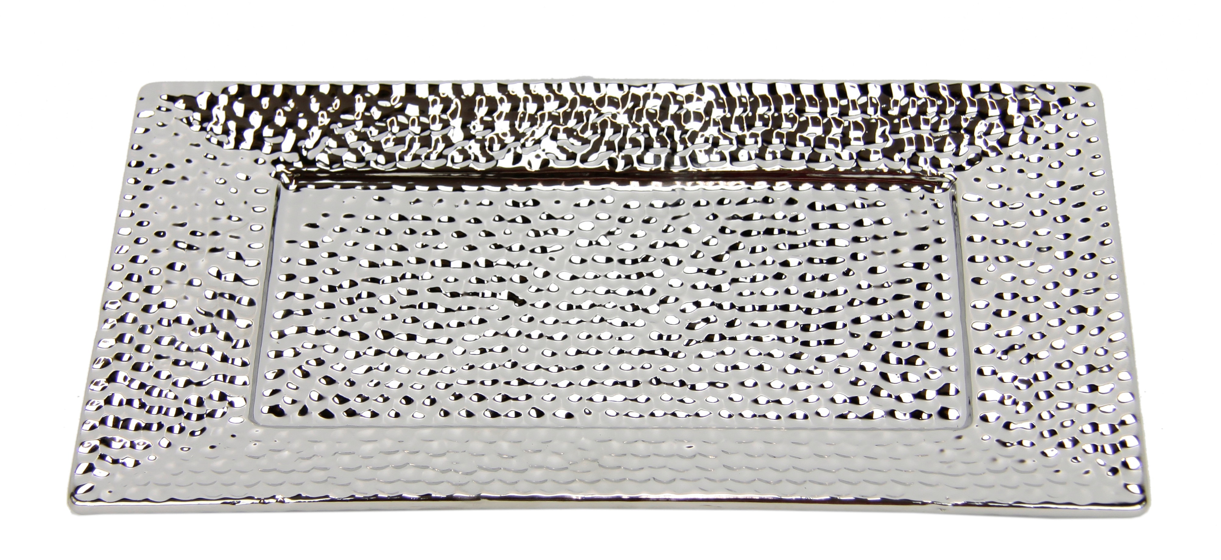 Moderne Eleganz – Eckige Dekoschale aus Keramik in Silber. Setzen Sie stilvolle Akzente mit di...