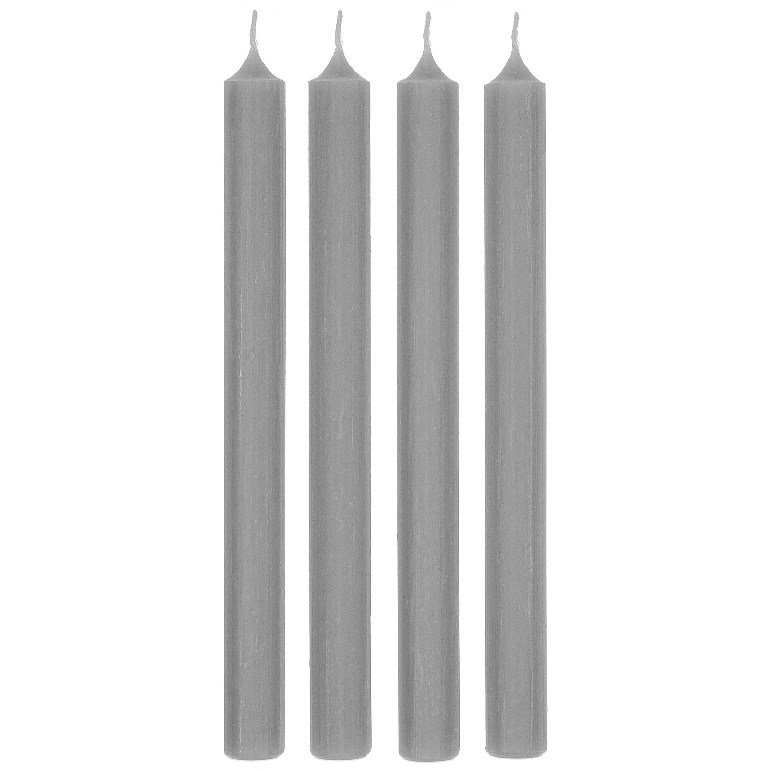 Rustikale Stabkerzen, silbergrau, 25 x 2,2 cm, 4 Stück