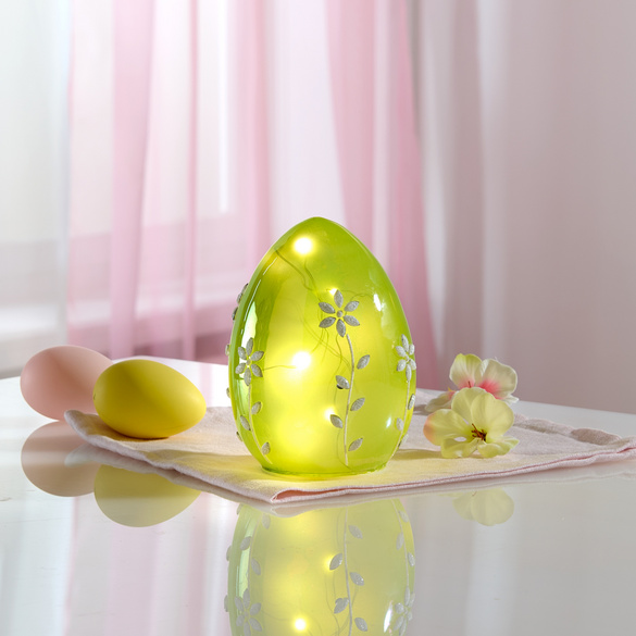 Im Stil historischer Prunkeier: gläserne Dekoeier mit filigranem Dekor und sanfter Beleuchtung ...