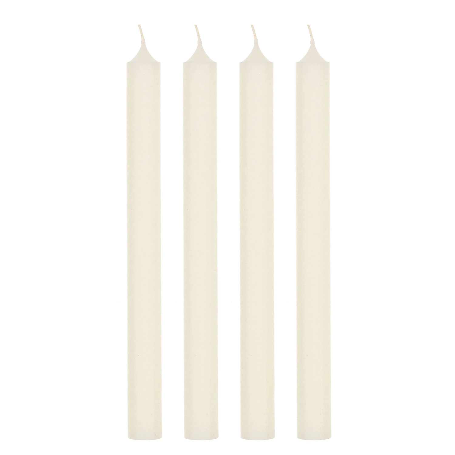 Rustikale Stabkerzen, wollweiß, 25 x 2,2 cm, 4 Stück