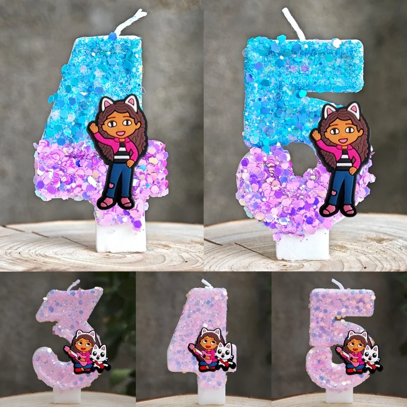 Neue Gabbys Puppenhaus Kerze Nummer 0-9 Anime Kinder Geburtstag Party Geburtstag Kuchen Plug-in Gebu...