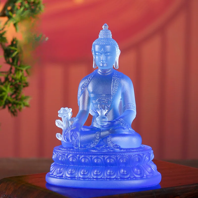 Farbige Glasur blaue Medizin Buddha Dekoration Einfachheit Haushalt Desktop exquisite Ornament kreat...