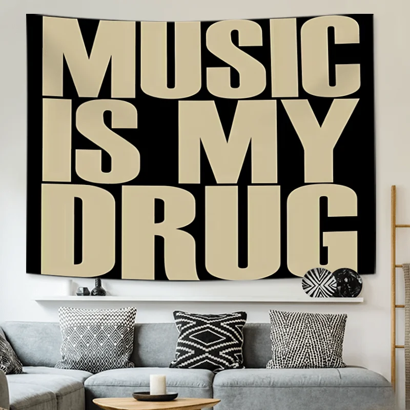 Wandteppich aus Polyester, Musik ist meine Medikament, kräftiger Schriftzug, dekorativer Wandbe...