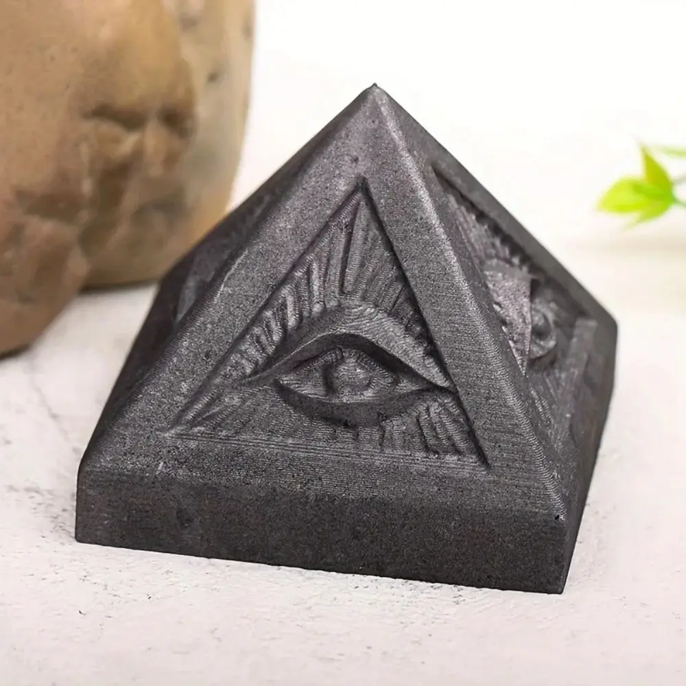 1 Stück Schwarz Schungit Engel Auge Pyramide Stein Regal Dekor Kompliziertes geschnitztes Desig...