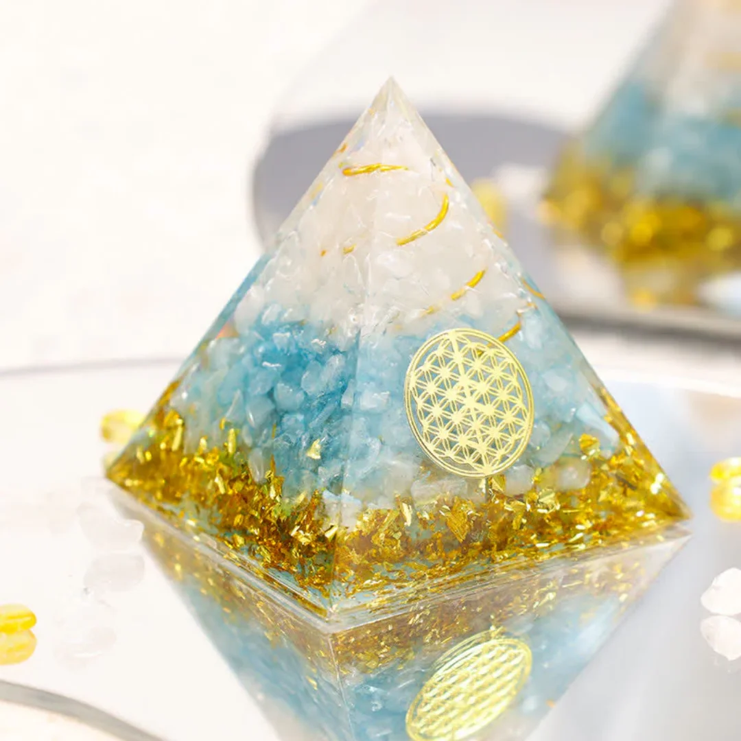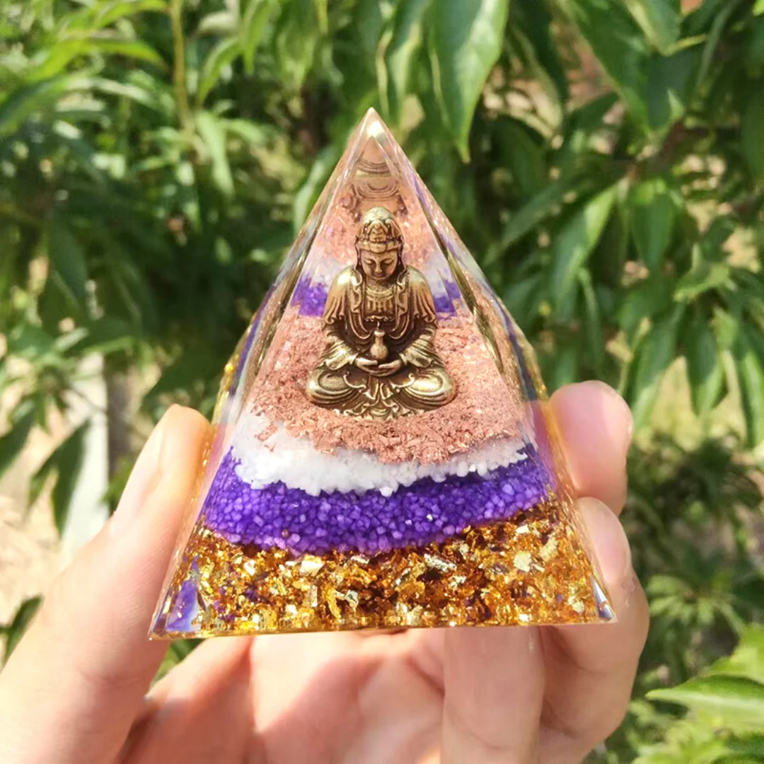 1 Stück Pyramide Ornament Buddha Statue Kies Harz, Kristallorganit Pyramide, Orgon Pyramide mit...