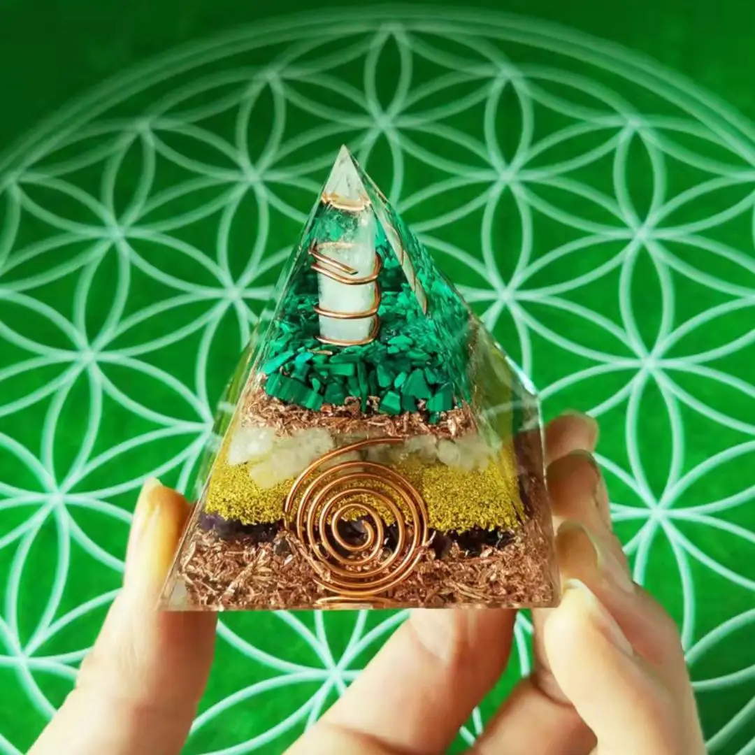 1PC Tigerauge Kristall und Malachit Orgon Pyramide, Orgon Pyramide ...