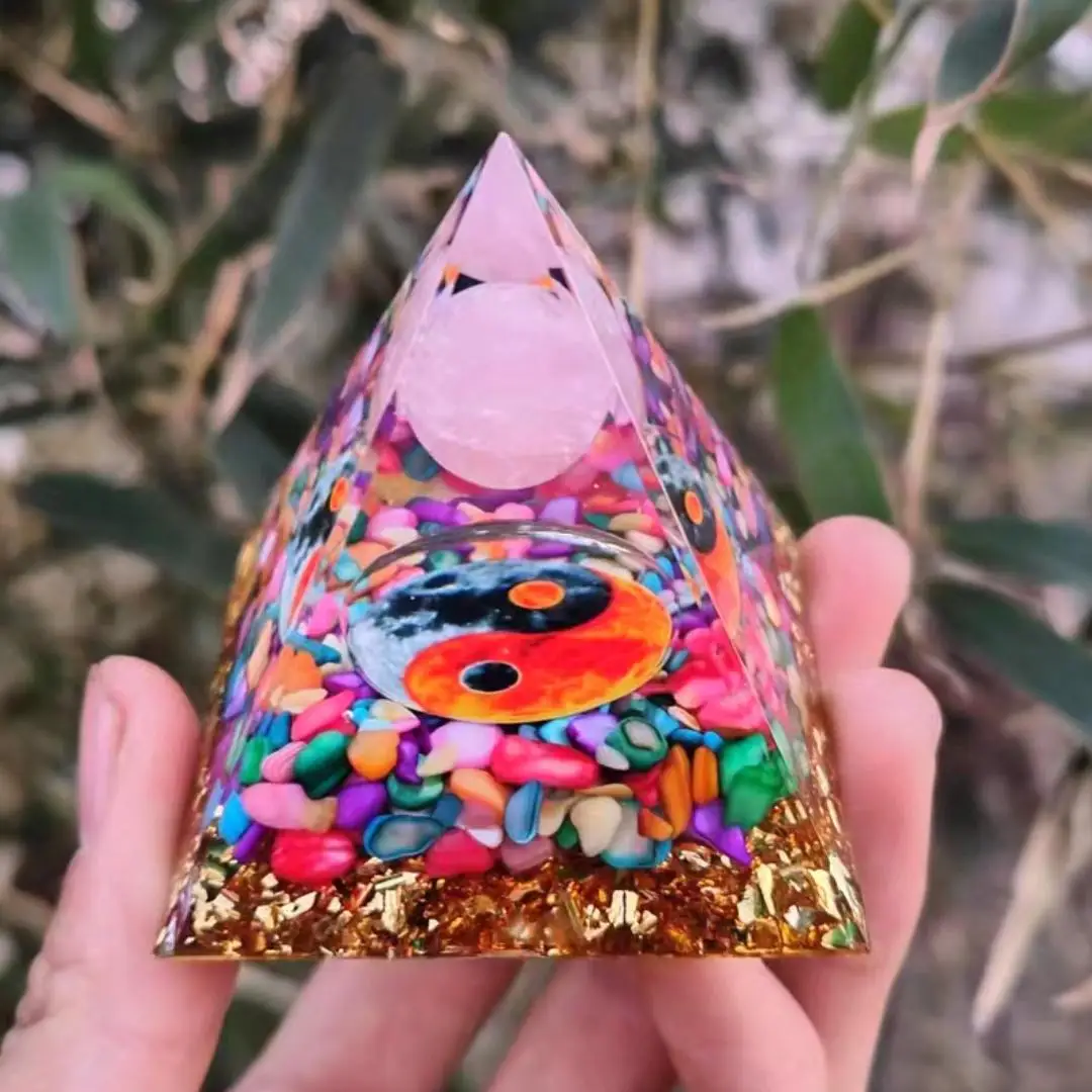 1 Stück Die Yin-Yang-Serie Kristall-Orgonit-Pyramide, Pyramide Rosenquarz-Kugel und farbiger Ac...