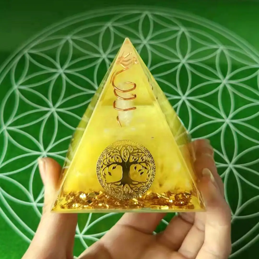 1 Stück natürliche gelbe Citrin-Edelstein-Orgon-Pyramide, Orgon-Pyramide, natürliche ...