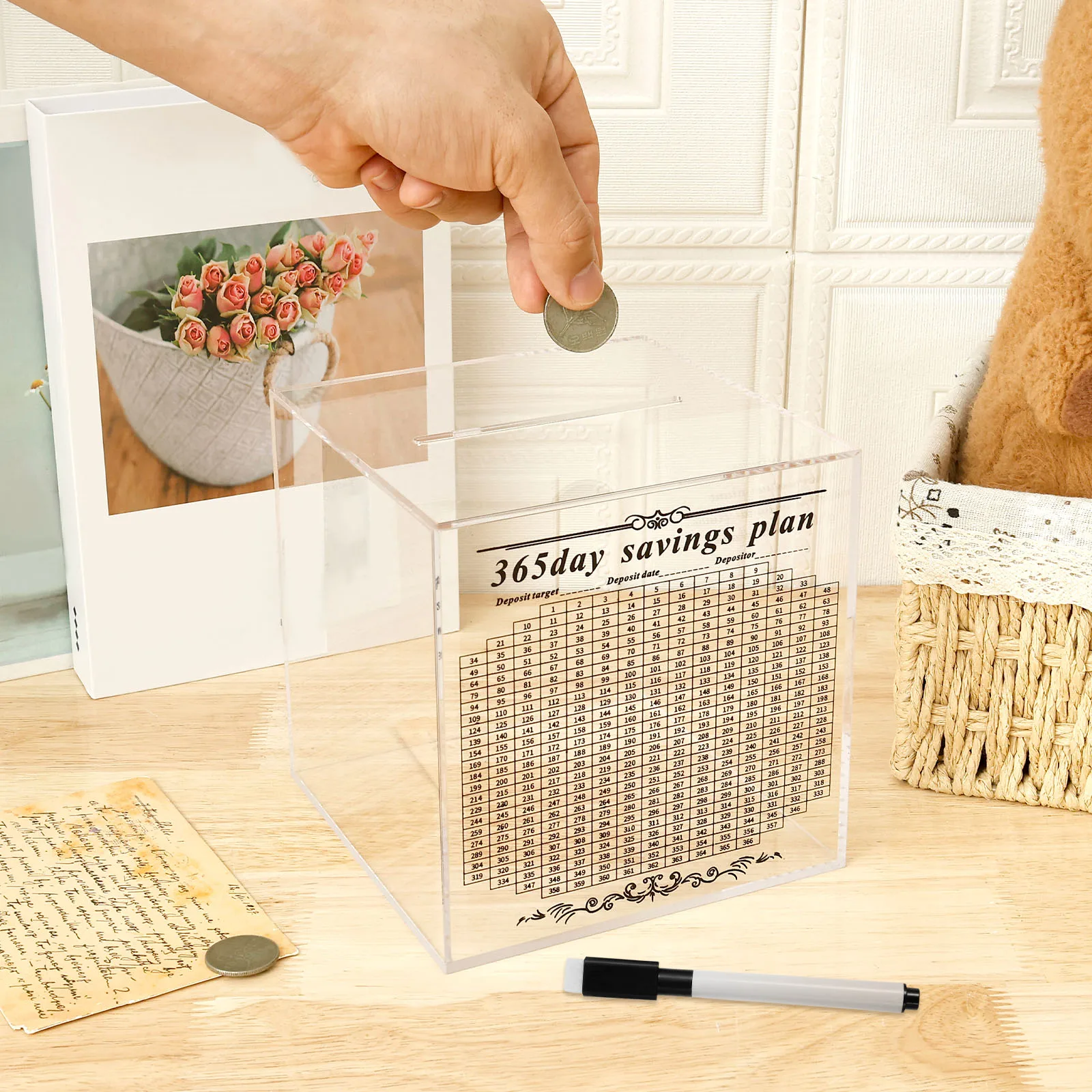 Acryl-Sparschwein, transparente Spardose, Bruch zum Öffnen von Bargeld und zum Wechseln, Spardo...
