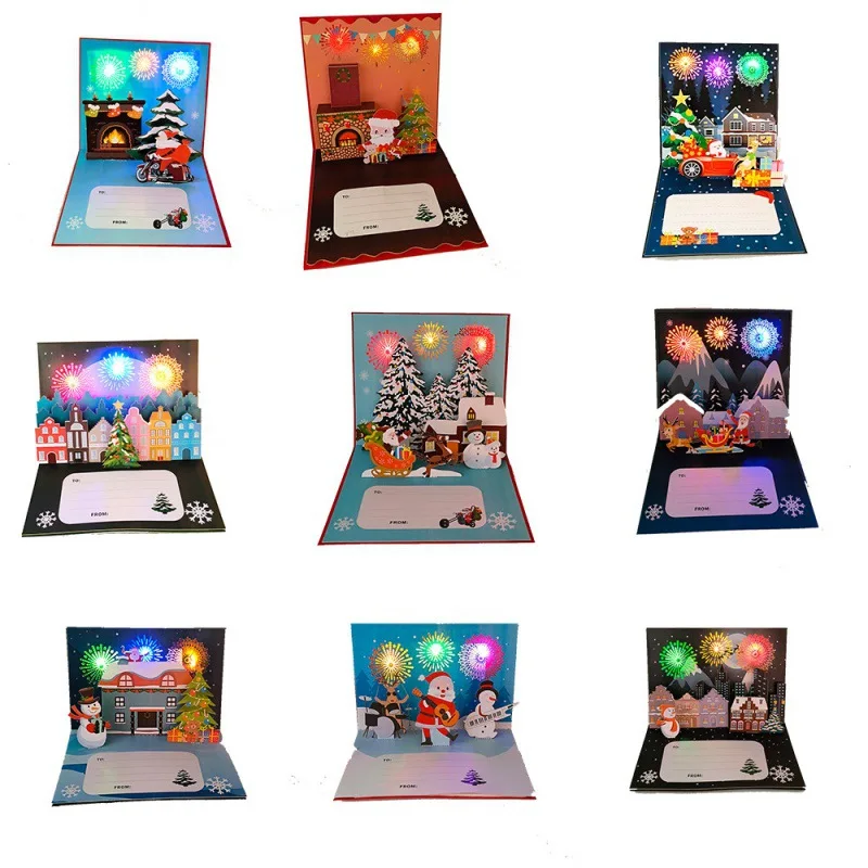 Neue 1pc Weihnachten Segen Feuerwerk Musik Lichter Weihnachtsmann Kamin 3D Grußkarte Papier Sk...