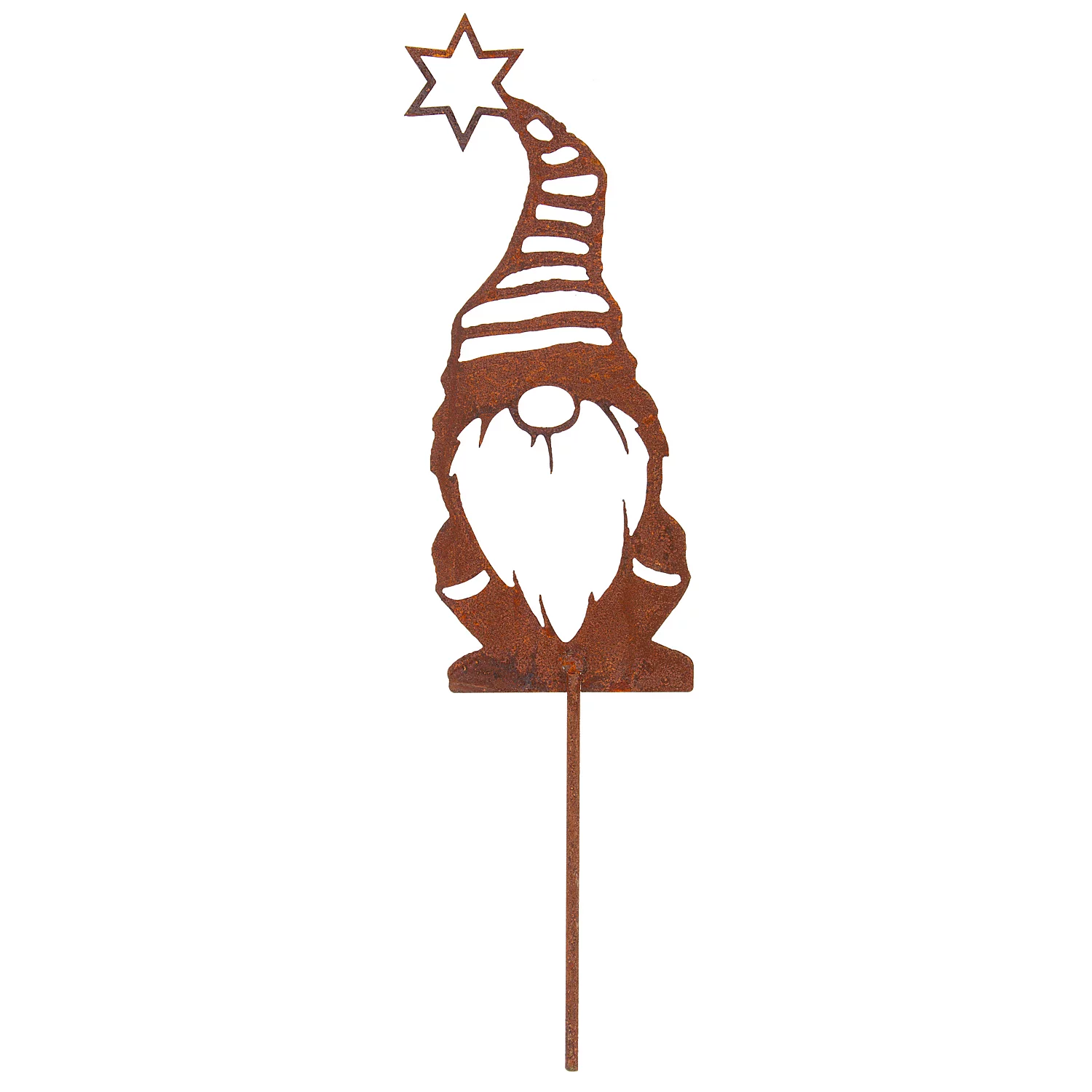 Rost-Wichtel mit Streifenmütze, aus Metall, Farbe: braun, Größe: 25 cm, Stablän...