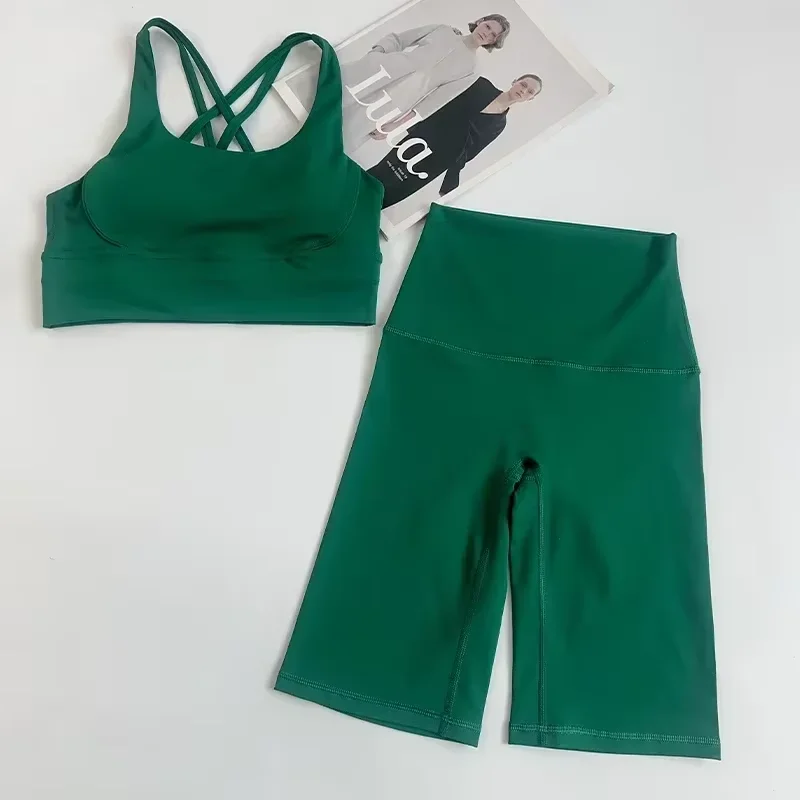 2-teilige Yoga-Kleidung für Damen, sexy Yoga-Weste, stoßdämpfende Kreuz-Schultergurt...