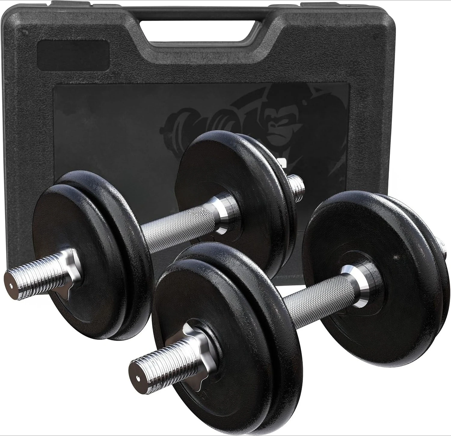 Kurzhanteln 2er Set - 20kg Gewichte, mit Koffer, 8 Hantelscheiben aus Gusseisen, Bar 30mm, Griff knu...