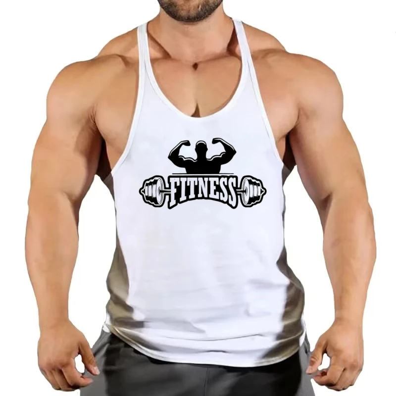 Ärmelloses Y-Back-Fitnessweste für Herren, Post-Workout-Unterhemd aus Baumwolle für M...