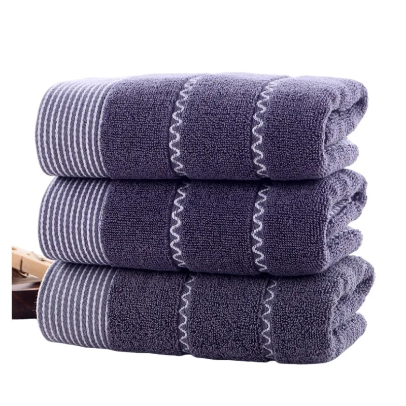 3-teiliges graues Baumwoll-Handtuch-Set, 34 x 74 cm/70 x 140 cm, bestickt, für Badezimmer, geom...