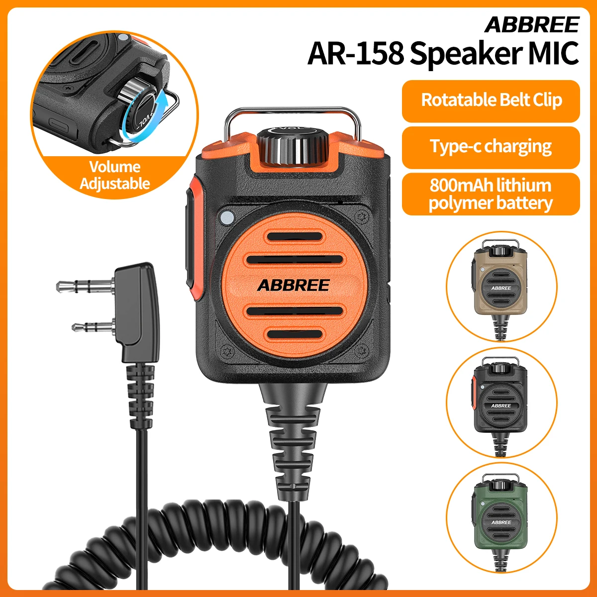 ABBREE AR-158 Walkie-Talkie-Lautsprechermikrofon, einstellbare Lautstärke, 2-polig, wiederaufla...