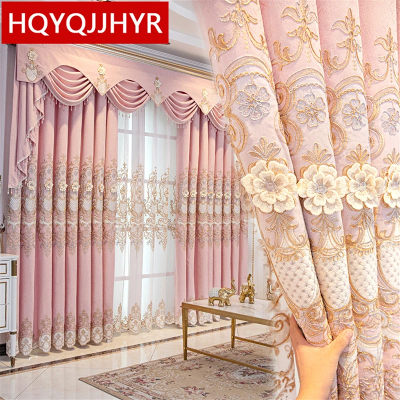 HQYQJJHYR Europäische hochwertige rosa 3D bestickte Verdunkelungsvorhänge für Wohnzim...