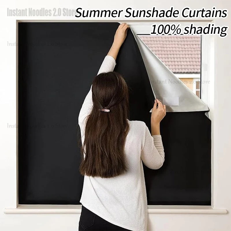 100 % Verdunkelungsvorhang, dunkle Fensterfolie, selbstklebende, lichtblockierende Vorhänge, So...