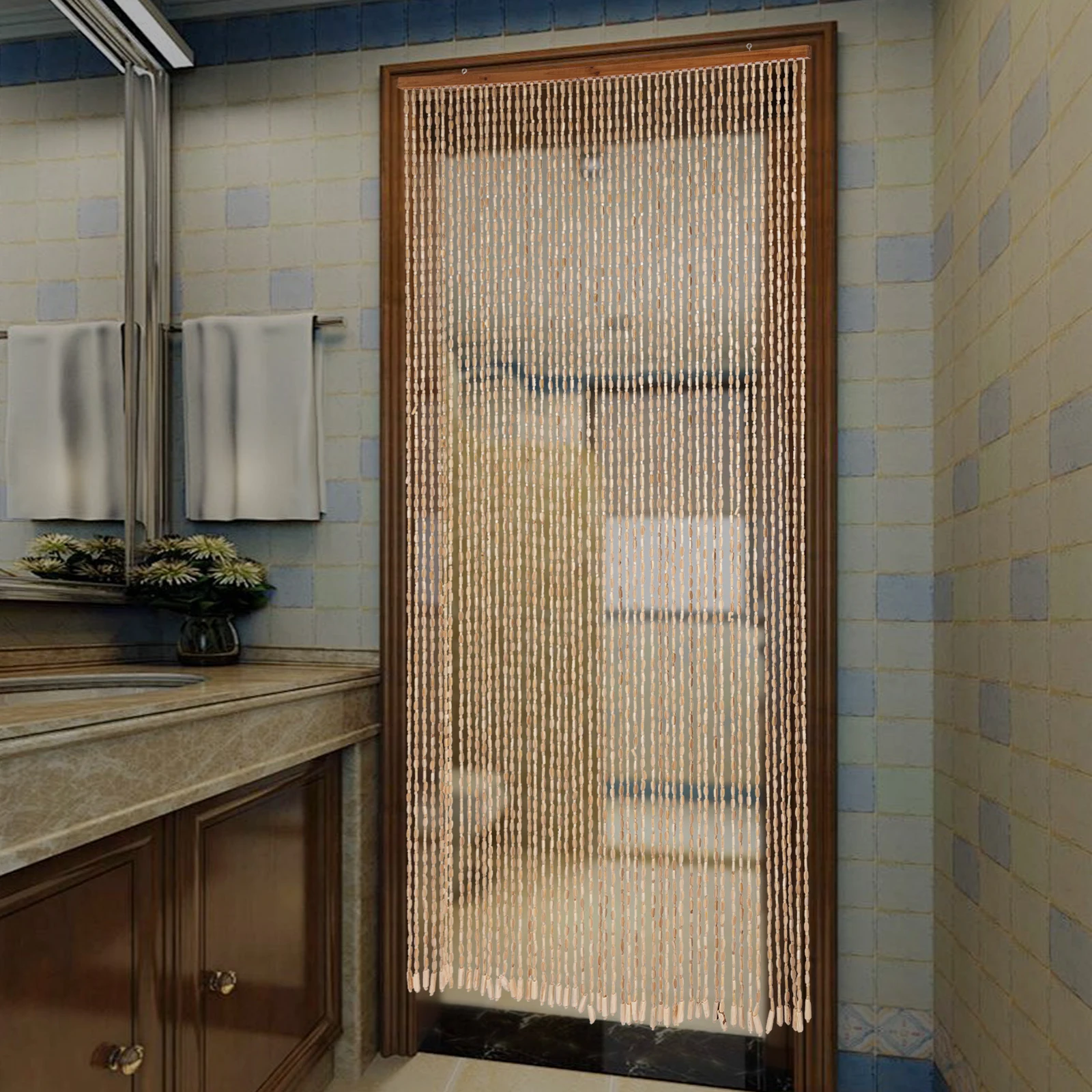 200 x 90 cm Raumteiler-Vorhang, Perlenvorhang aus Bambusholz, Türvorhang in Log-Farbe, 52 Saite...