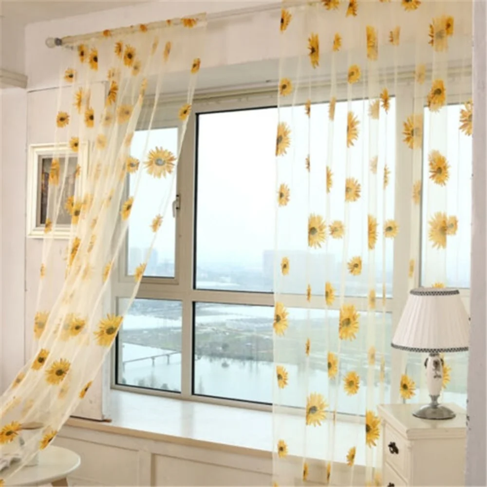 Sonnenblumen-Tüllvorhänge für Wohnzimmer, Schlafzimm...