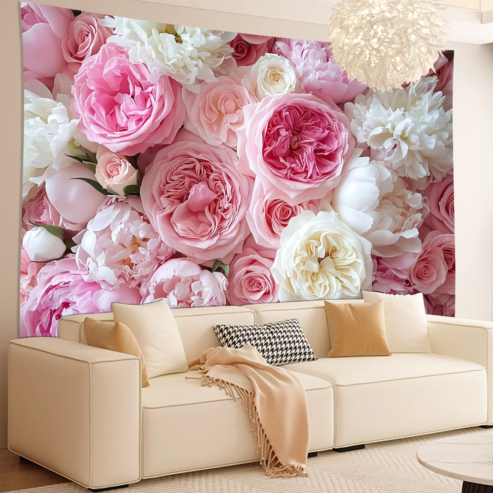 Eleganter rosa und weißer Blumen-Wandteppich, Wohnzimmer, Schlafzimmer, Büro, Party-Dekor...