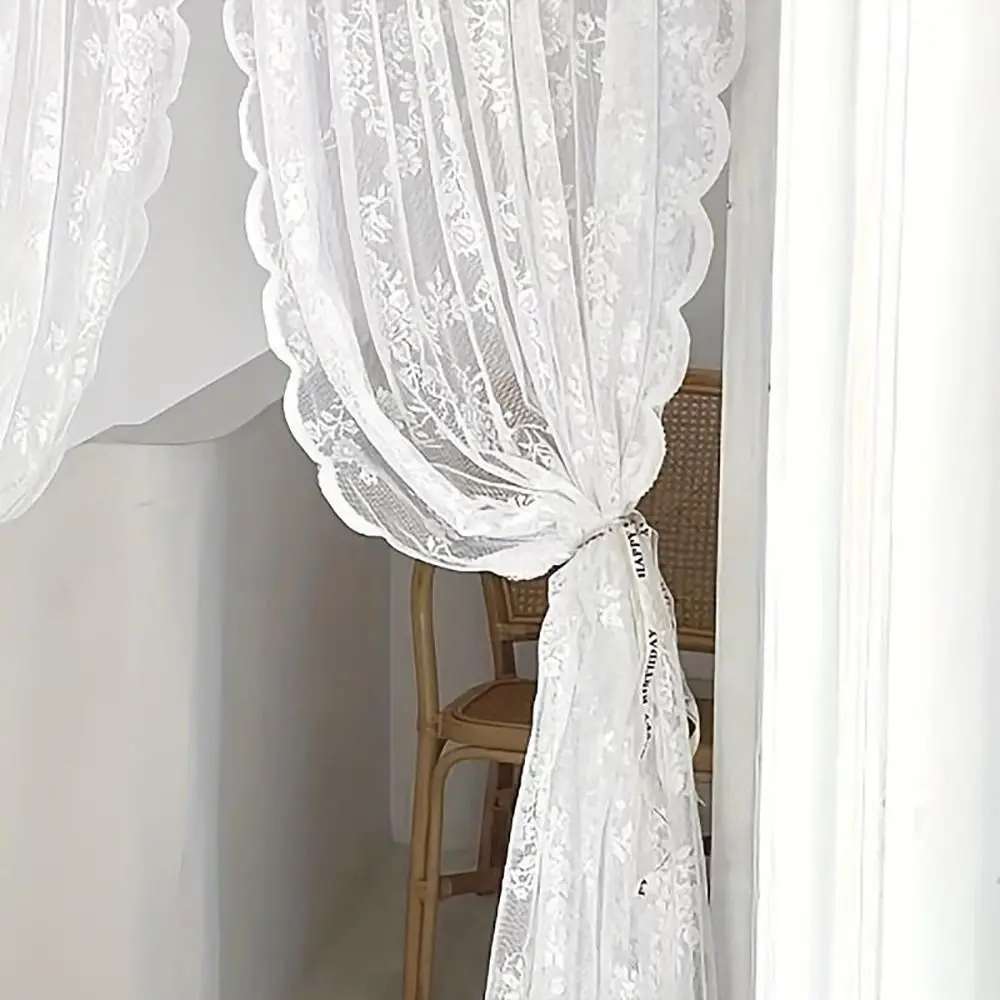 1 Stück floral bestickte Spitze Vorhangstange Tasche 150 x 200 cm transparenter Vorhang wei&szl...