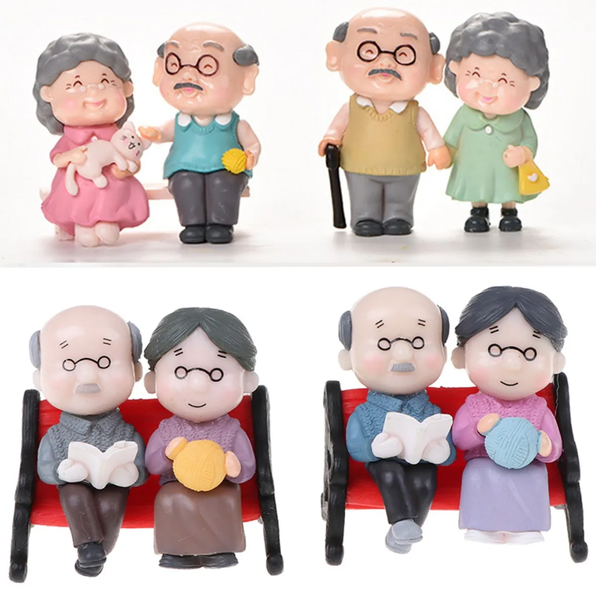Süße alte Liebhaber Paar Ornament Mini Paar Figuren Oma Opa für Fee Garten Figuren M...