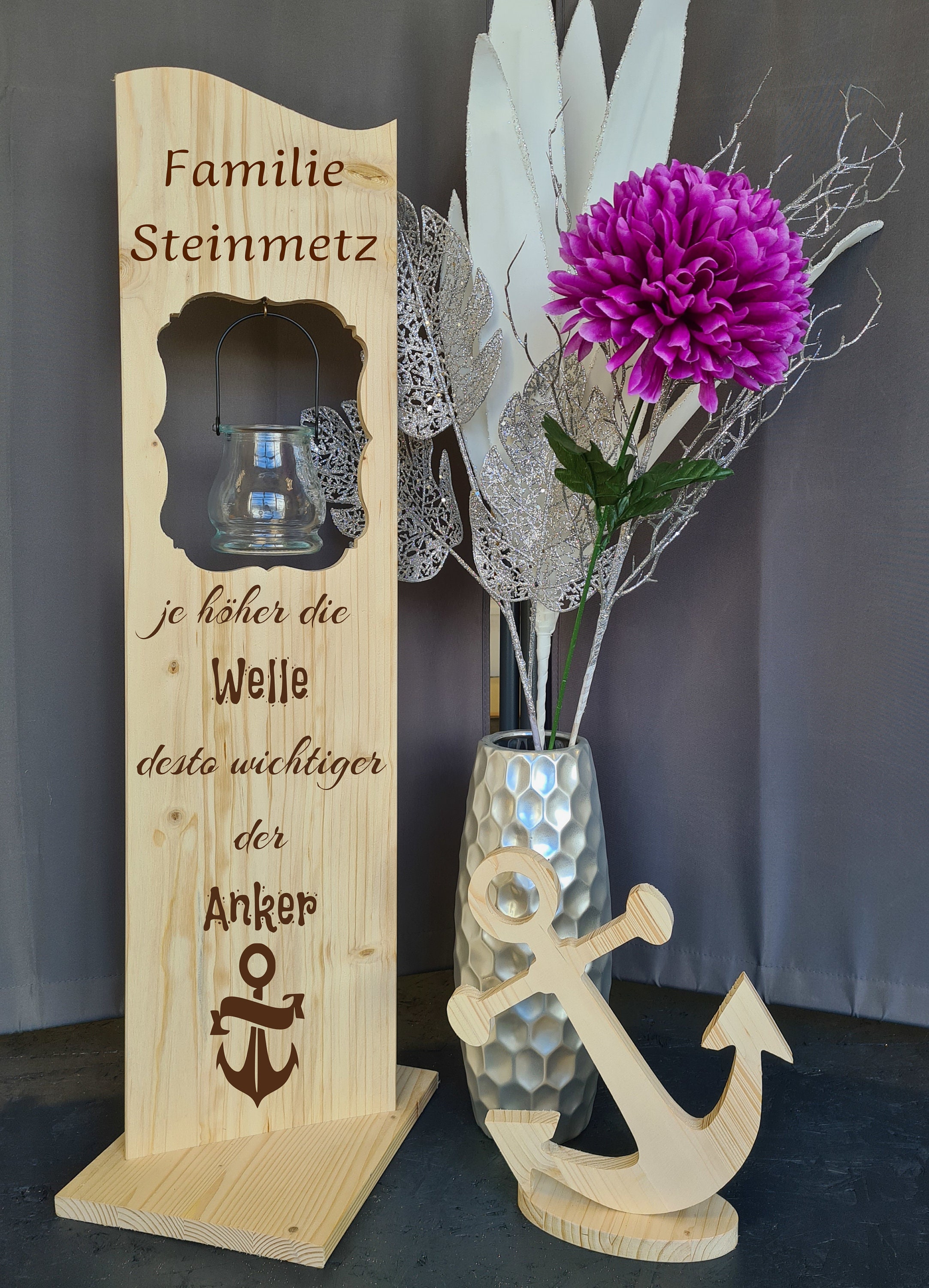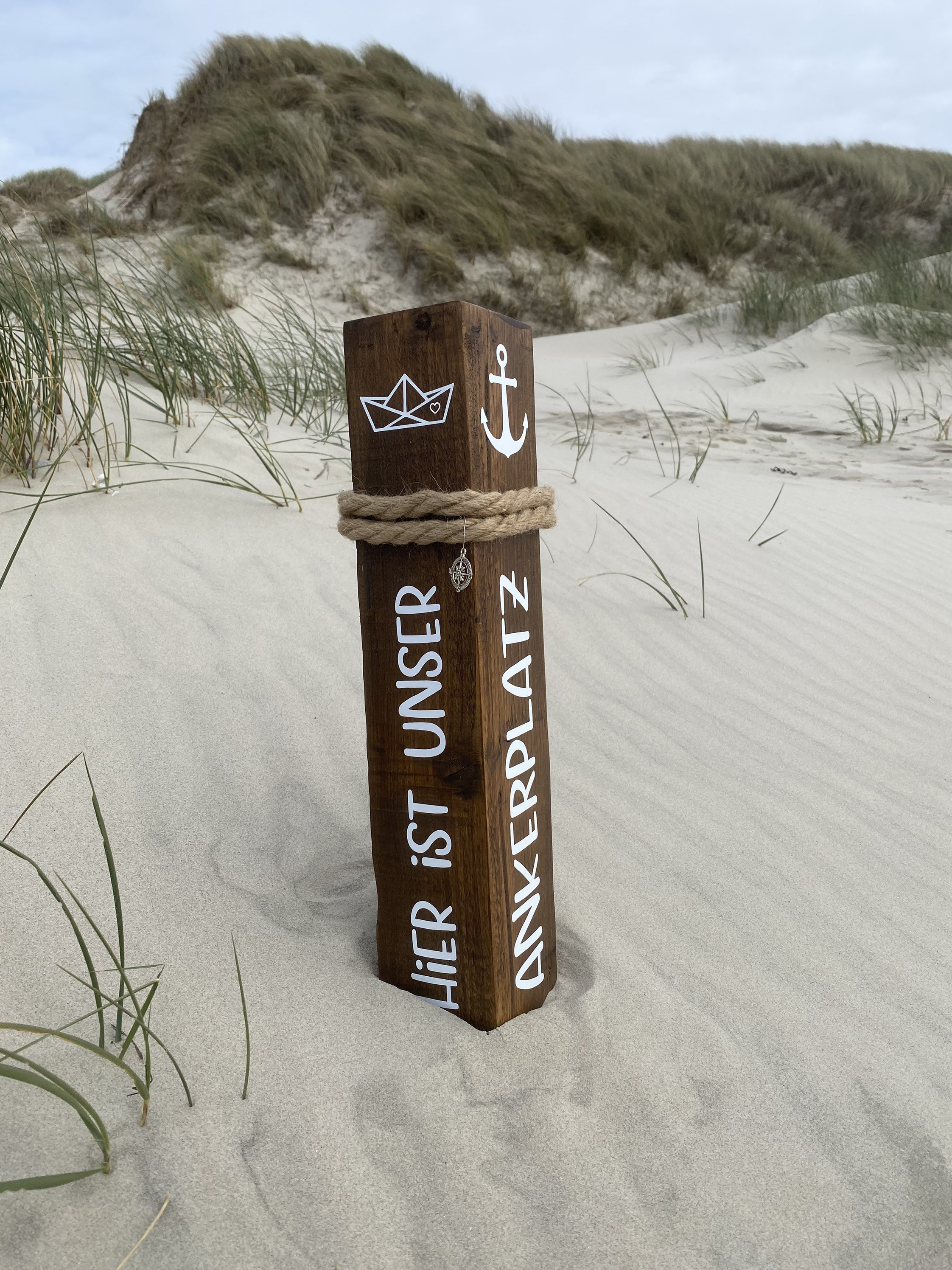 Maritime Holzsäule mit Anker & Boot | Gartenpoller Küstendeko | Heimathafen Maritime S...