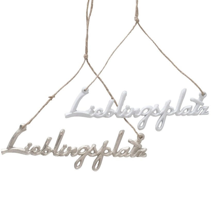2er Set Metall Hänger Lieblingsplatz weiss silber 25cm