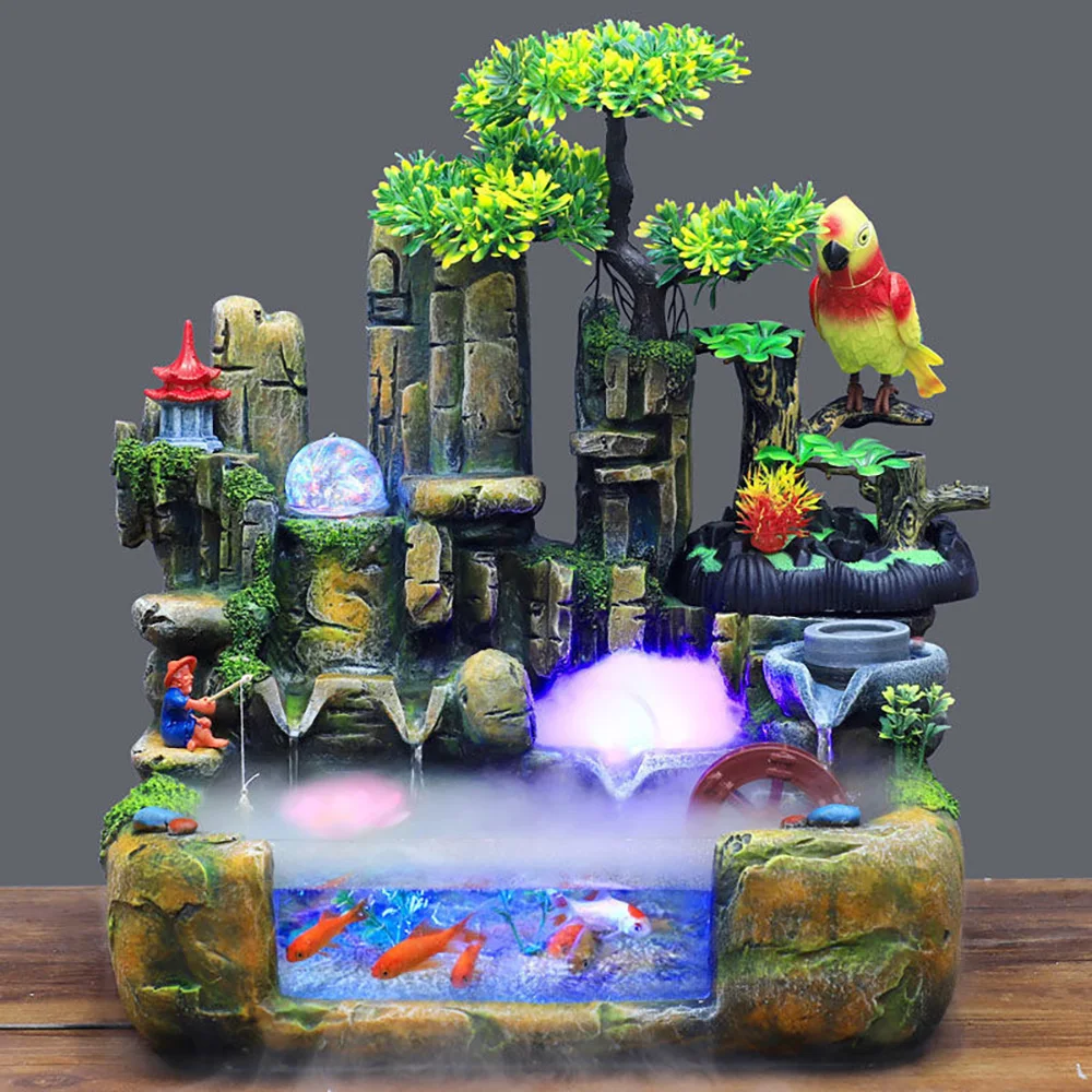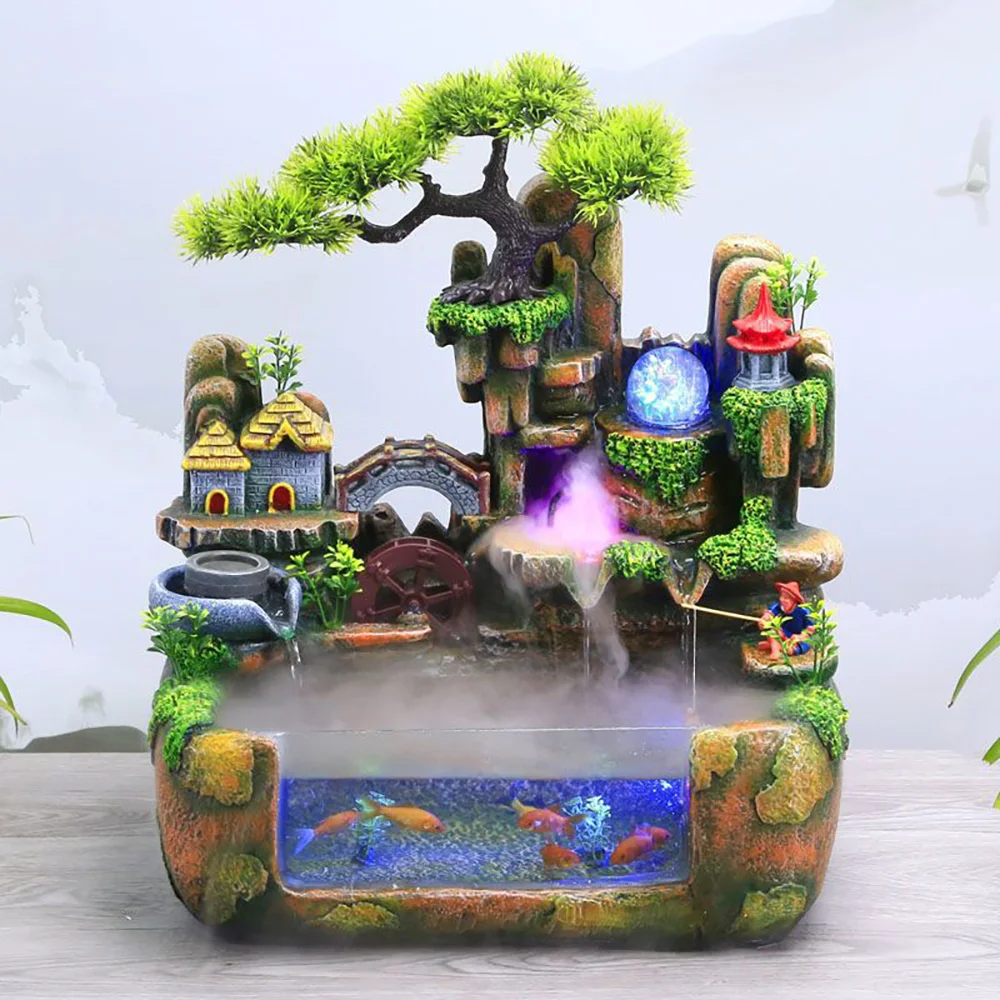Simulierte Landschaft Ornamente Aquarium Brunnen Wasserfall Restaurant Dekorationen Spray mit LED Li...