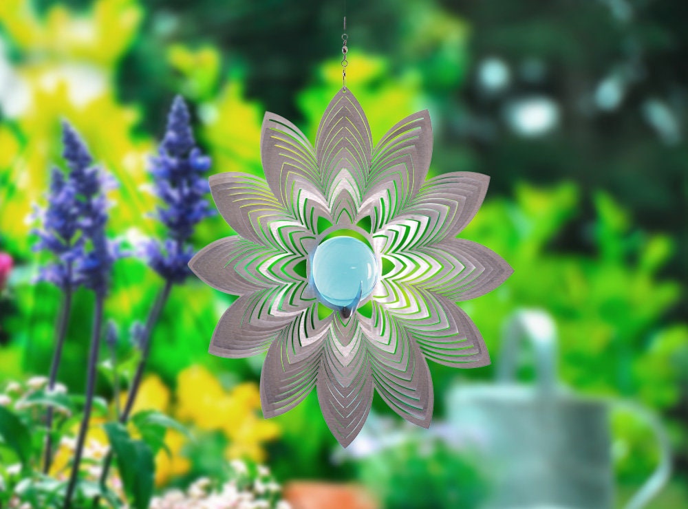 Illumino Edelstahl Windspiel Wind Spinner Azalea mit 50mm Glaskugel...