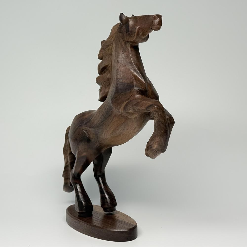 Holzskulptur eines Pferdes aus Nussbaum Hergestellt von KeystoneDesign Artikelspezifikationen Materi...