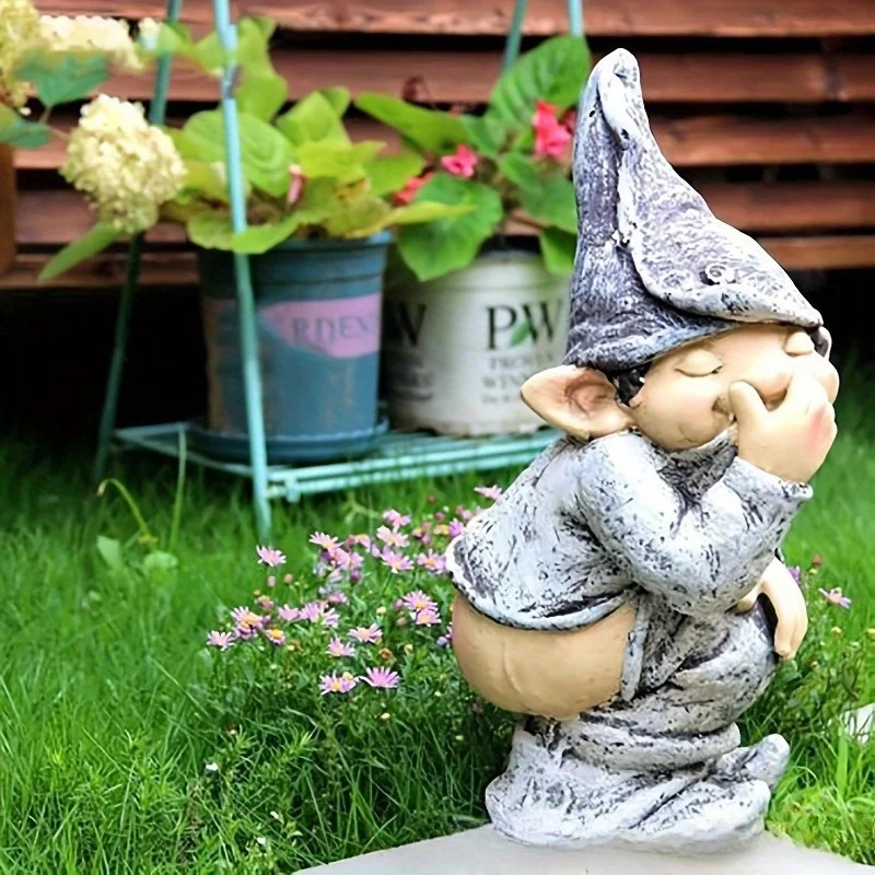 Skurriler La Stinky Zwerg-Gartenzwerg aus Kunstharz – humorvolle, zeitgenössische Hochzei...